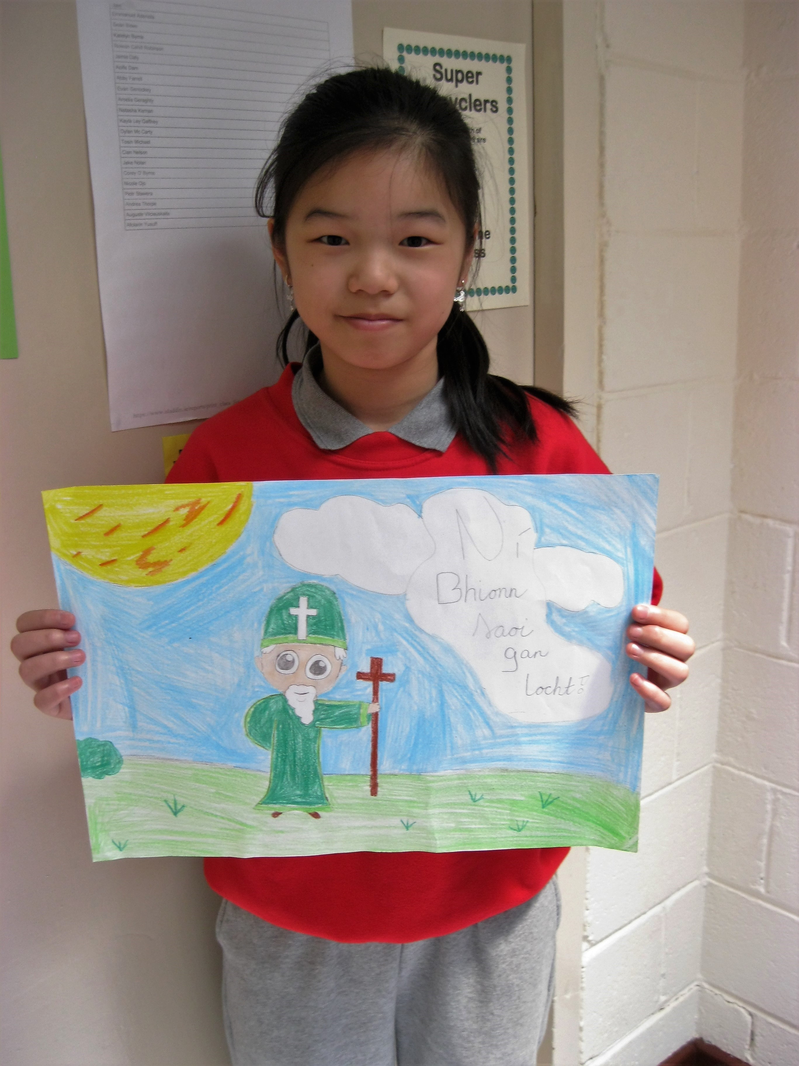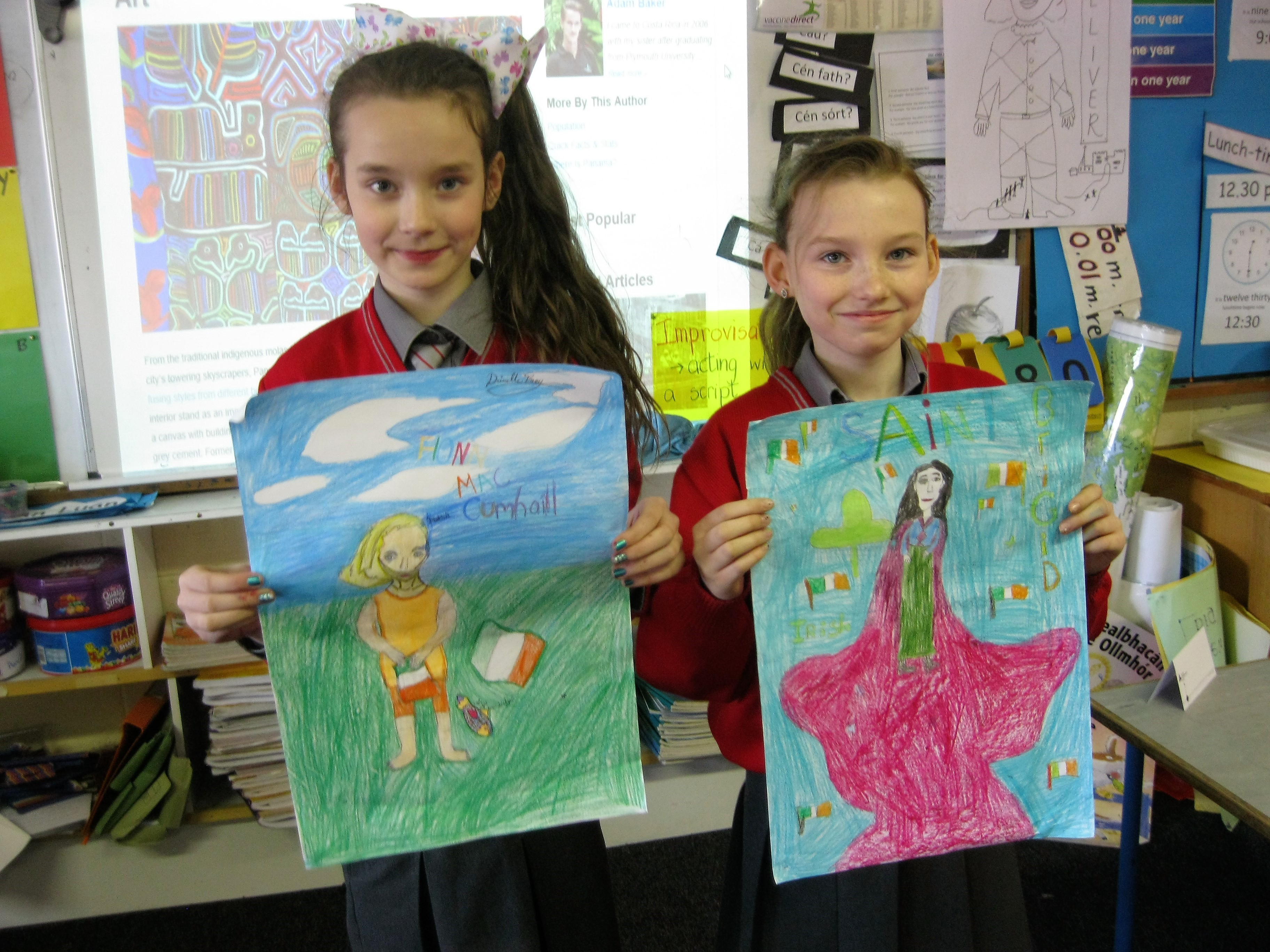 Posted on March 28, 2017By cwynne2278In Uncategorized Ms Ní Dhúill organised lots of fun events for Seachtain na Gaeilge: céili mór, class-room prizes and an art competition. All winning entries are on view in the school foyer. Themes for this competition were Irish heroes and Irish sayings.