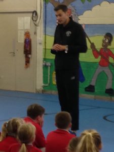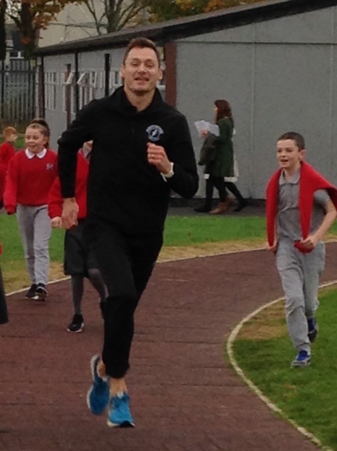 David Gillick, an International athlete who has represented Ireland in the Olympics, visited the school and ran with the children and spoke to them about the importance of being healthy and the enjoyment they can get from running. He had some inspirational words for the children, and talked to them about setting goals in their life – things that they would like to achieve in the future.
