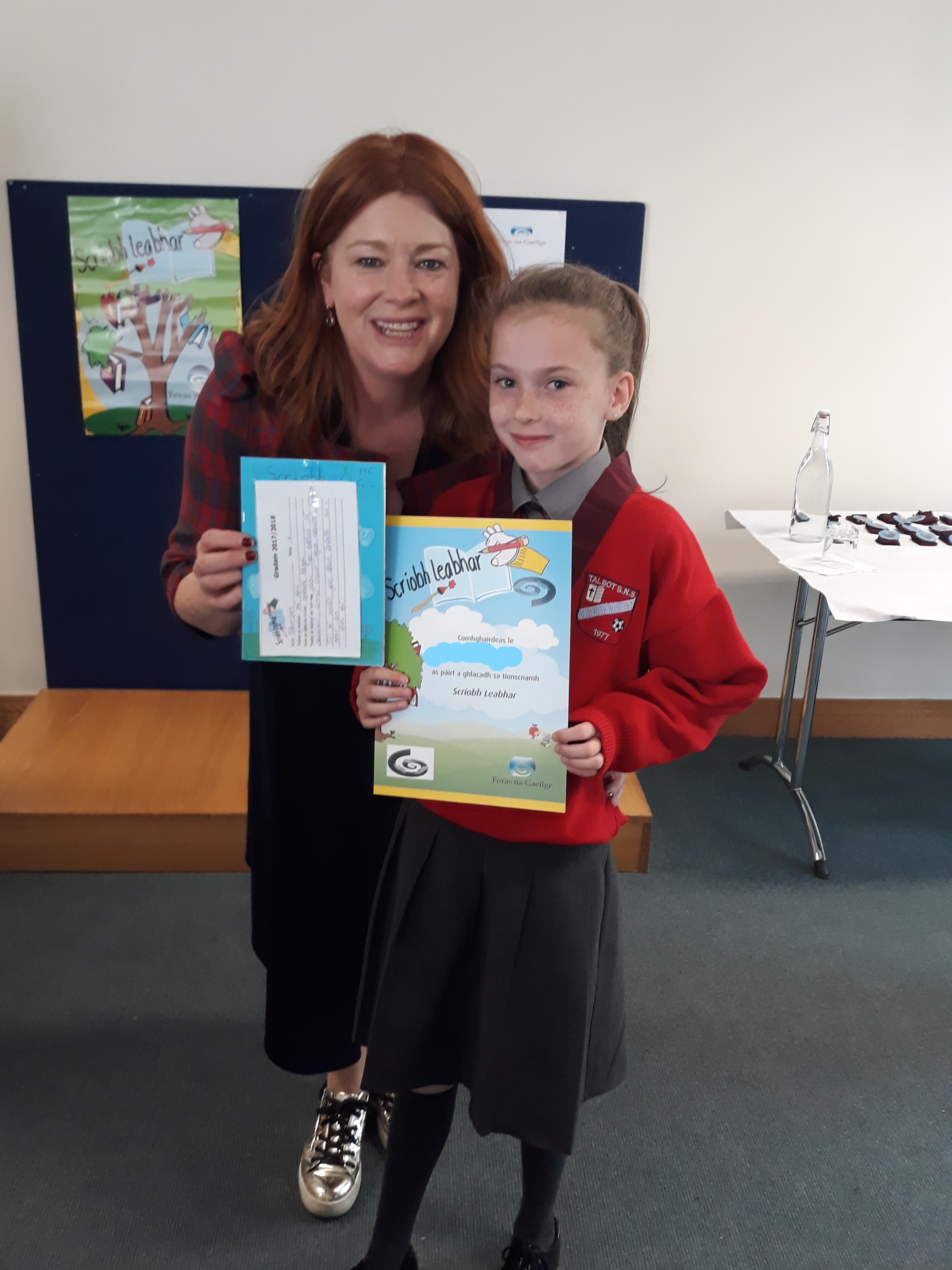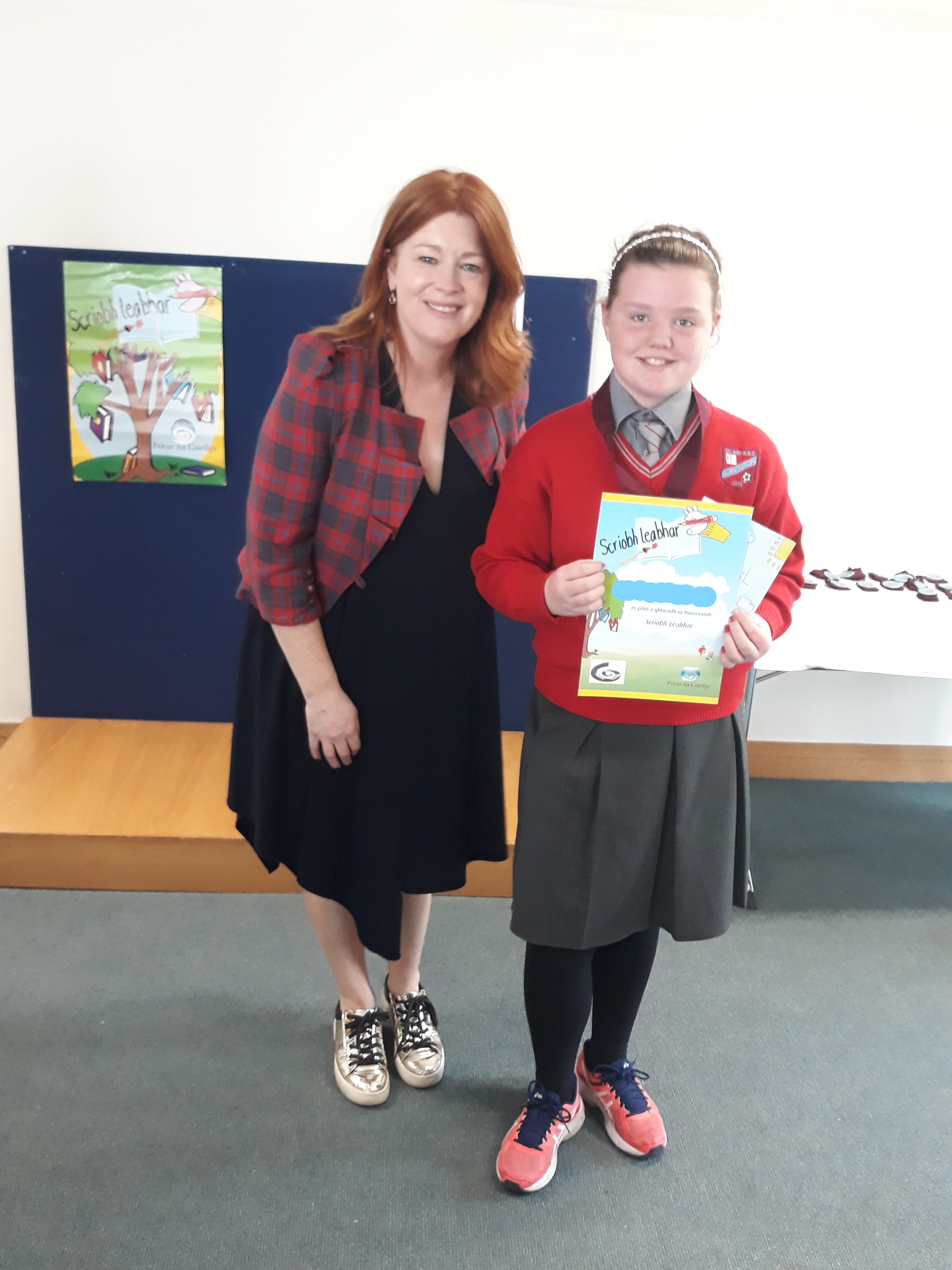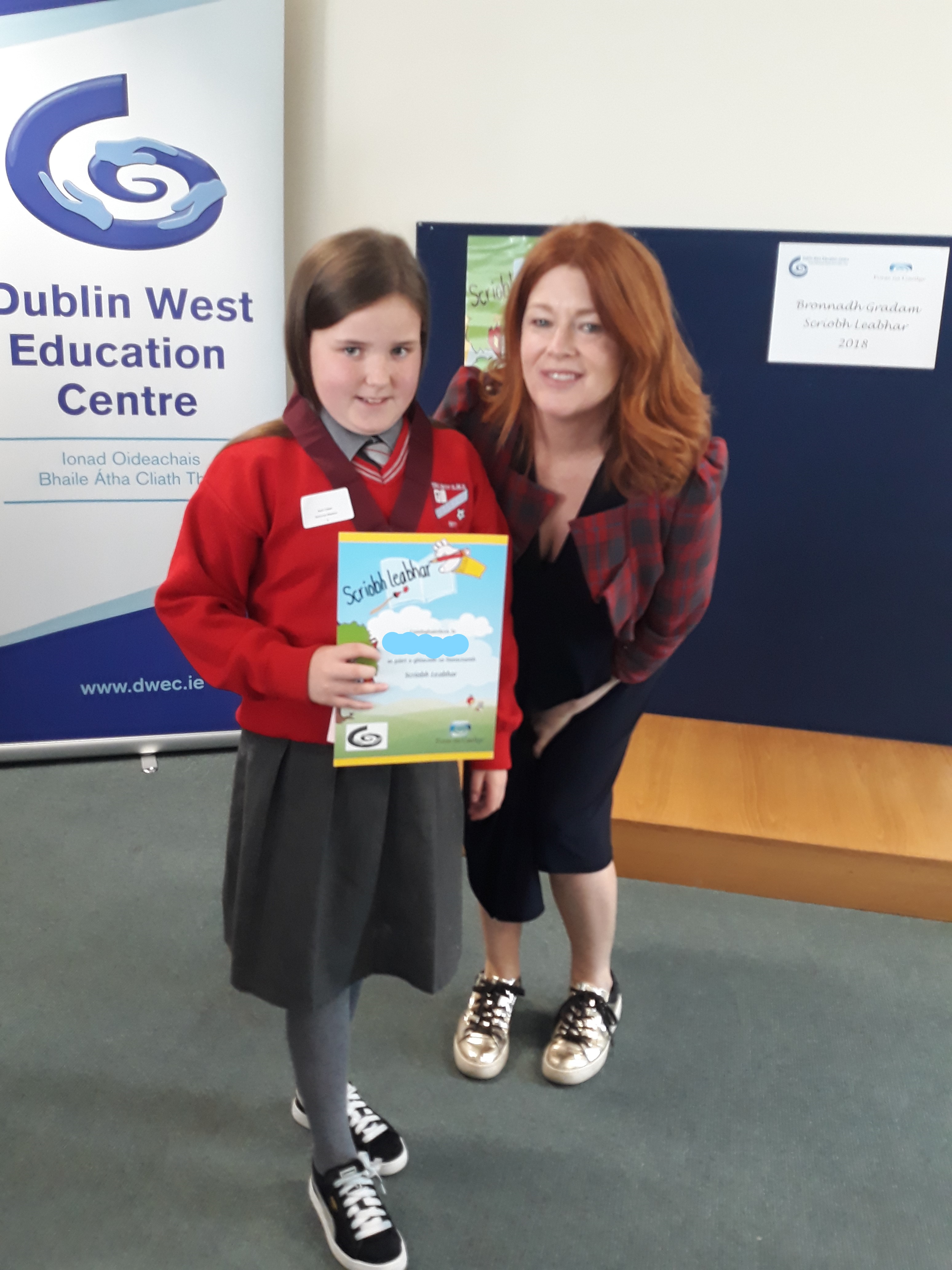 Posted on April 27, 2018By adminIn Uncategorized We had a lovely morning at Dublin West Education Centre yesterday. All winners received medals and certificates for their Scriobh leabhair from TG4 Blaithnaid Ní Cóiffigh! Well done everyone. Ms Ní Dhúill