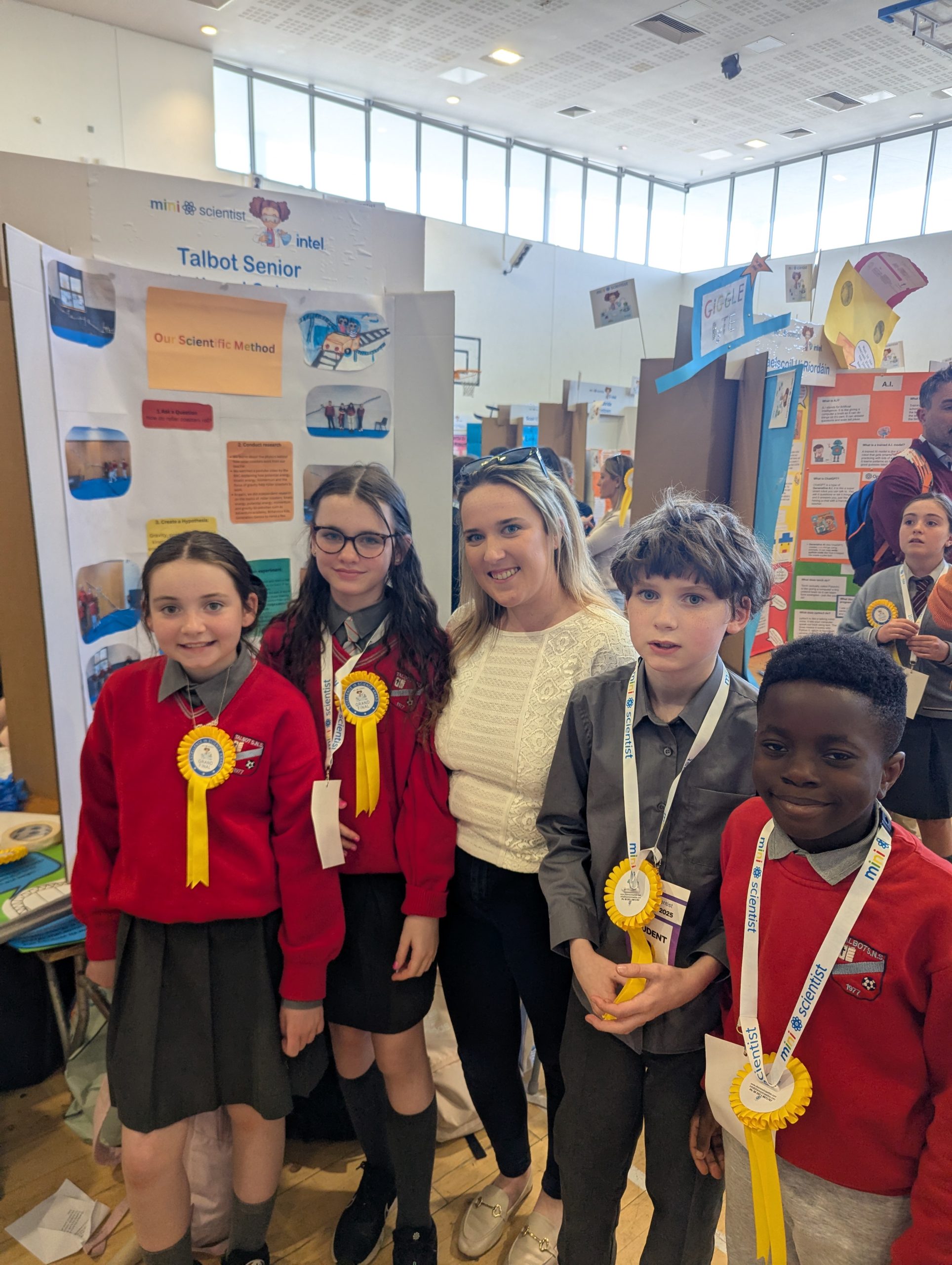 On Tuesday 29th April four of our pupils made it to the finals of a nationwide primary schools science competition in TU Blachardstown. A huge congratulations to the four pupils from 5th class, and their teacher, Ms. Lonergan! This team proudly represented Talbot Senior National School at the Intel Mini Scientist National Finals event in Dublin attended by 80 primary schools from all over Ireland.