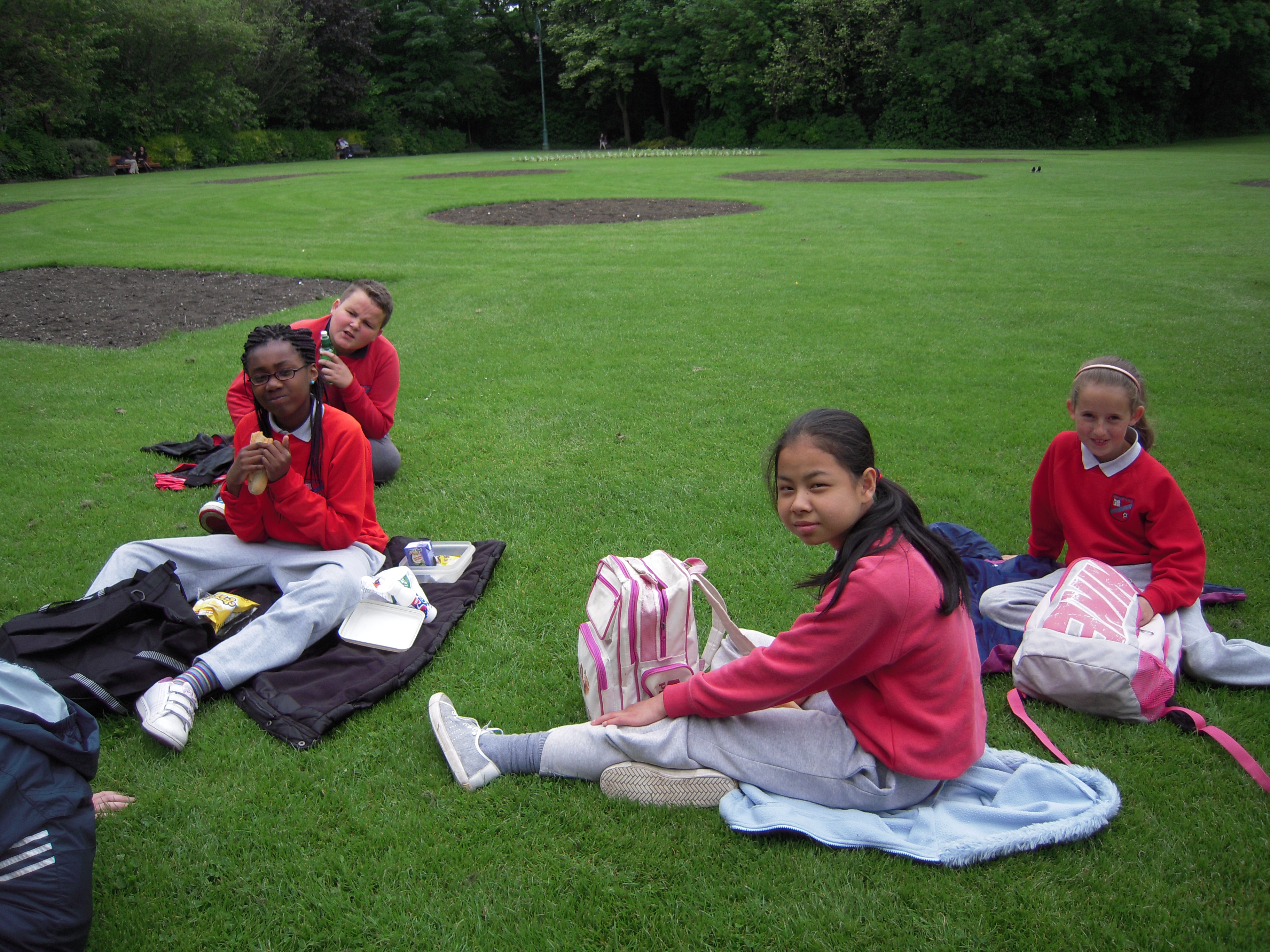 When we finished there Ms Walsh got a guard to stop the traffic! and we went across the road to Merrion Square Park where we had a picnic and played in the playground. We were very lucky that it stayed dry.